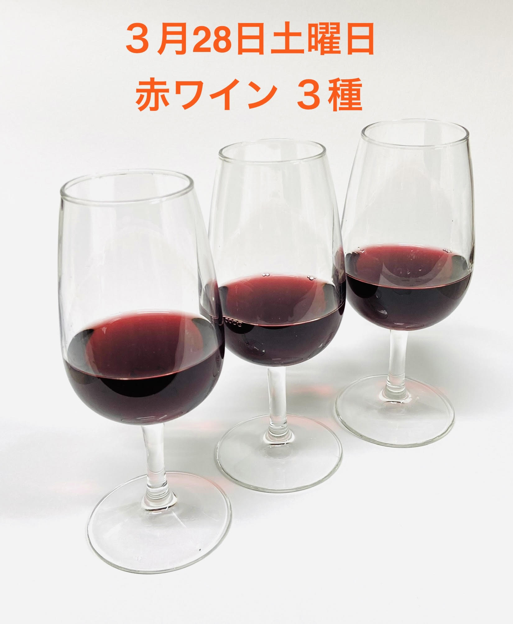 今度の土曜日、赤ワインのブラインドテイスティングを開催します ラベルを隠して、味と香りだけで品種を楽しむブラインドテイスティング。 2月は白ワインで開催し、ご好評をいただきました。 3月は、いよいよ 赤ワイン3種で行います。 45分ほどの短い時間ですが、 おしゃべりしながら、ゆったり楽しいひとときを過ごせたらうれしいです。 <開催日時> 3月28日(土) - 1部 15:00〜15:45 - 2部 17:00〜17:45 <参加費> 600円 <定員> 各回4名までの少人数制です。 予約制となりますのでよろしくお願いいたします。